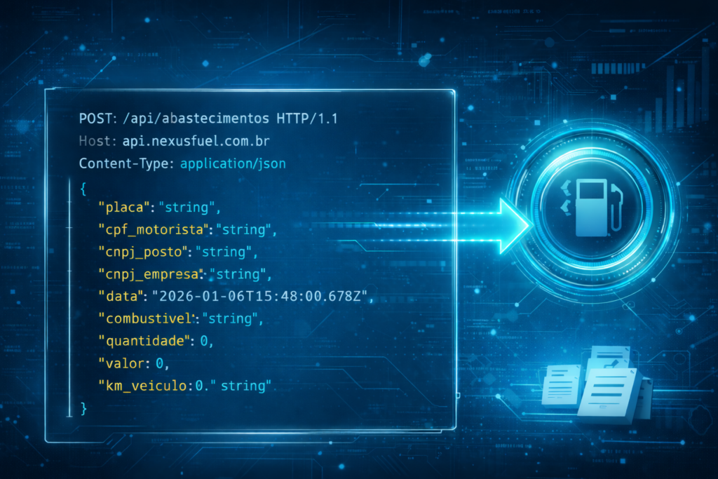 Para operações que demandam maior automação, o Nexus Fuel disponibiliza um endpoint de API REST para envio dos dados de abastecimento via método POST.